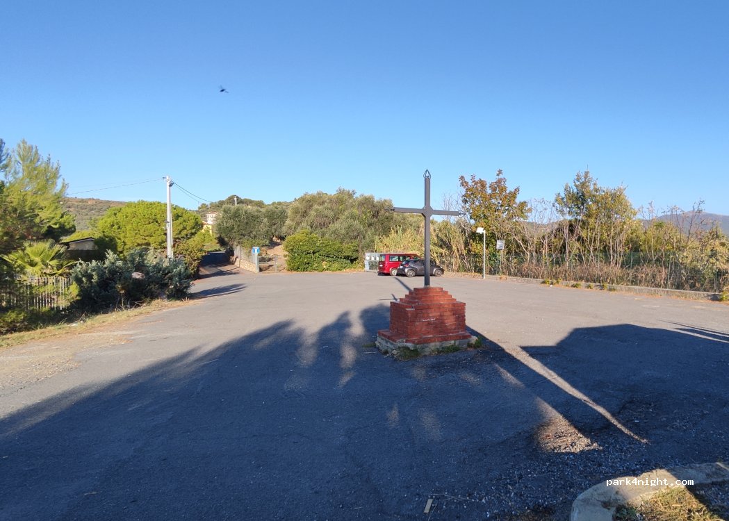 Parcheggio di un piccolo cimitero comunale, per l'accesso al mare è necessaria una moto, bella vista.
