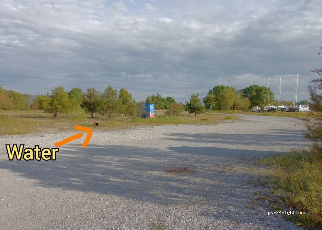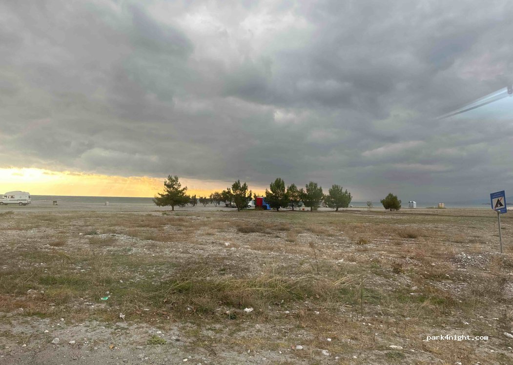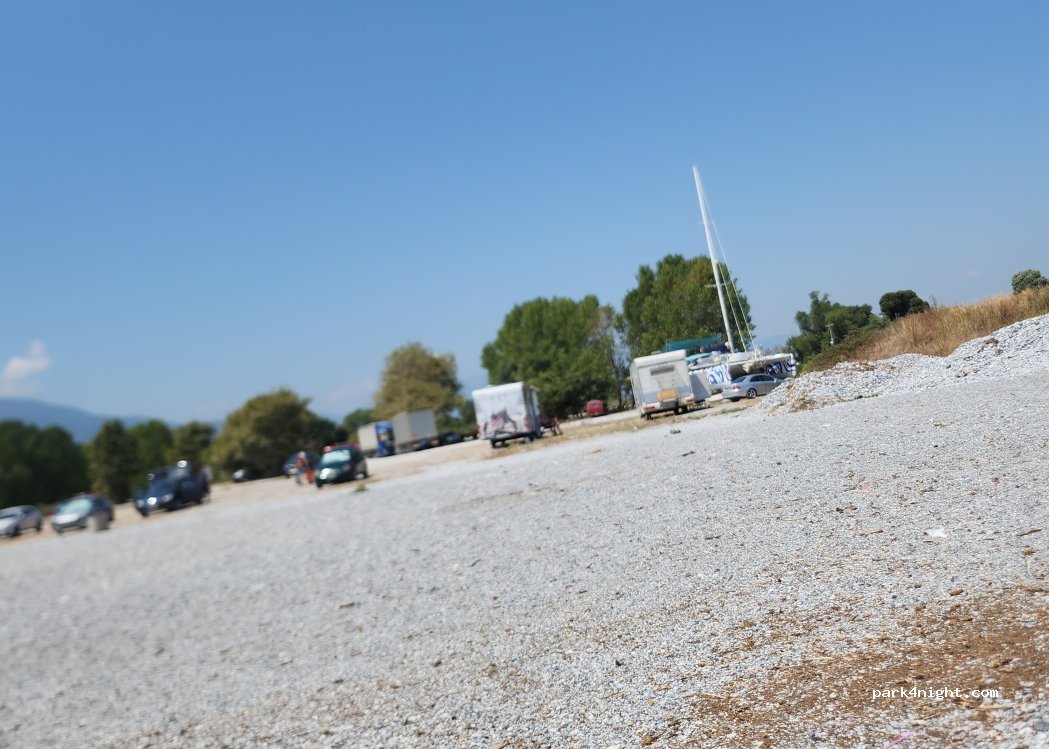 Extremely huge and large seaside parking place, with beach, shower and sunbeds. For security,pay attention.We had sleeping in our motorhome, daytime, when a guy come to our car from his car with another two persons, knocking in our door, when we doesn't answer, he had opened our motorhome door, without our permissions. Say something in Greece language, after one minute, he leave. Not safe place!