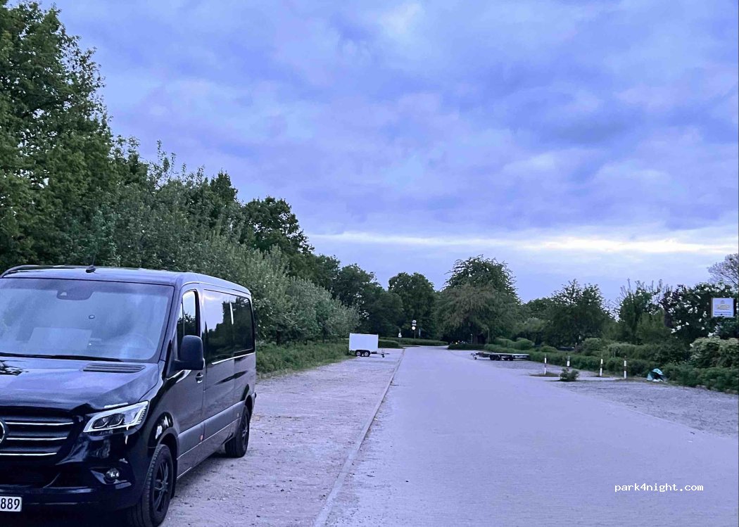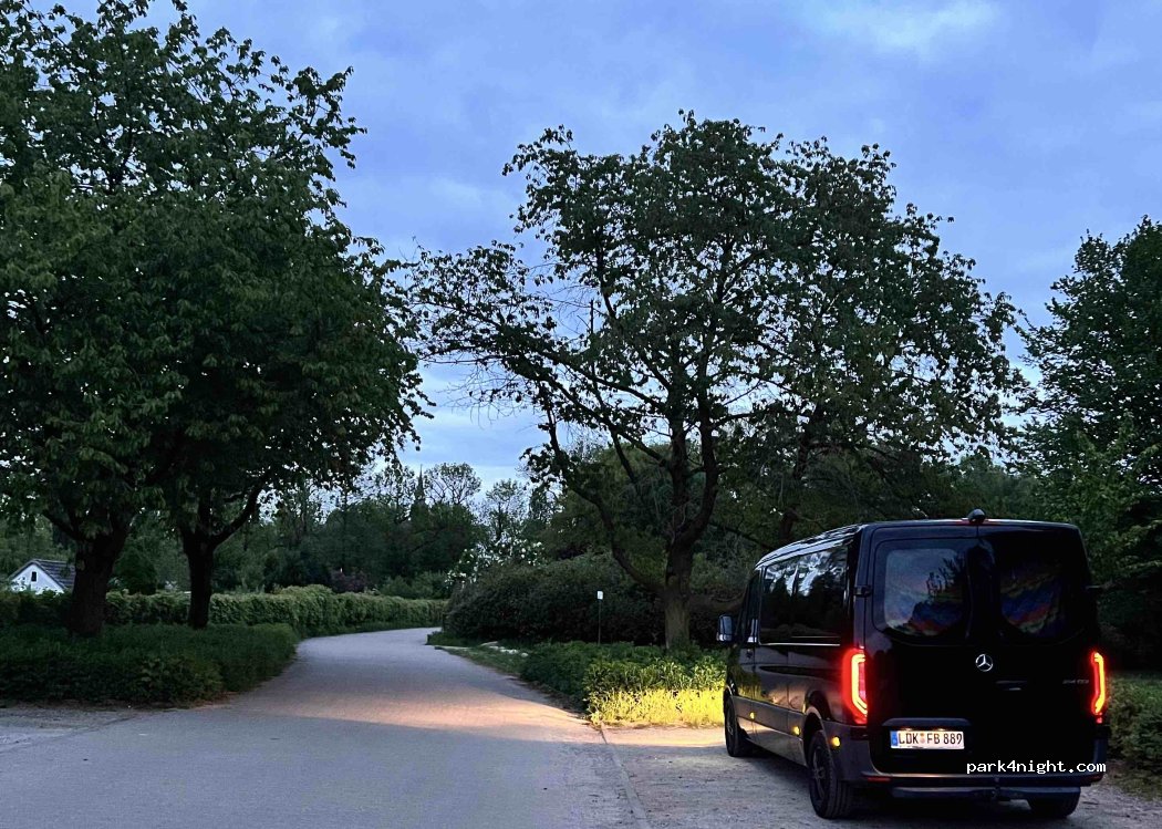 Parking lot between lots of allotment garden clubs. Very calm and nice people. Some small parks where you can go for a walk and a pizzeria right next to the old windmill. Great for an overnight stay.