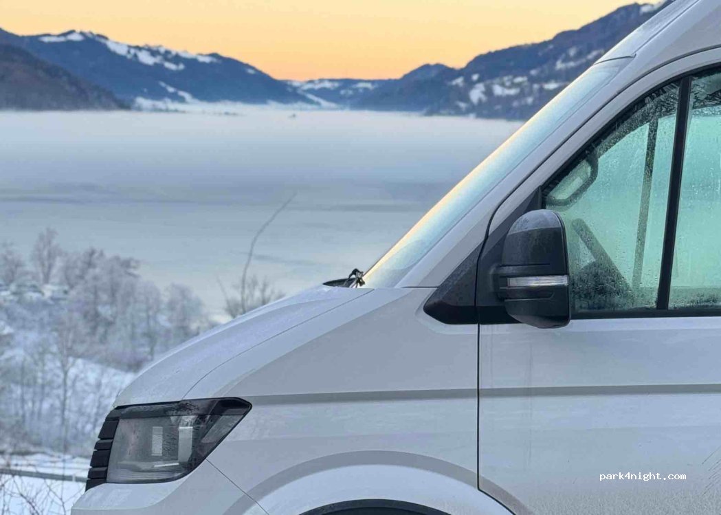 Der Parkplatz bietet zwar eine schönen Aussicht auf den See ,aber es ist sehr laut aufgrund der Straße nebenan .Zudem halten sich viele einfach so auf dem Parkplatz auf ,wodurch die Privatsphäre nicht gewährleistet wird