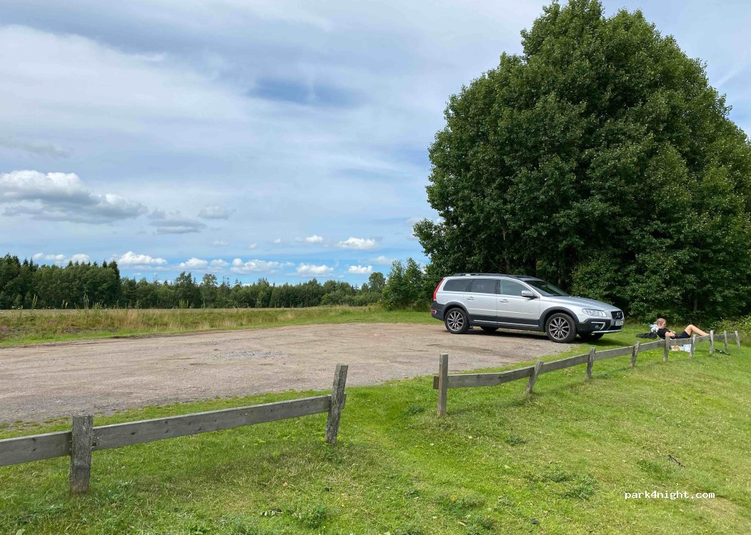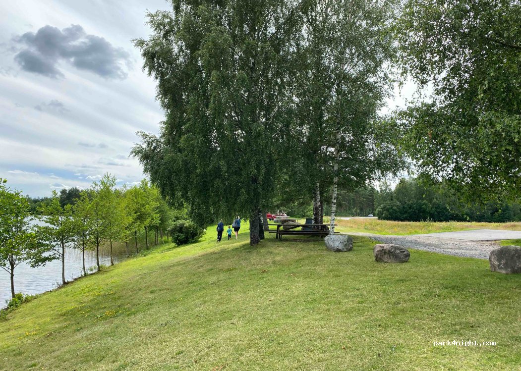 very close to the road, yet very little traffic. The lake is beautiful, there is room for three campervans. lots of visitors during the day as it's high season and semester time here in Sweden