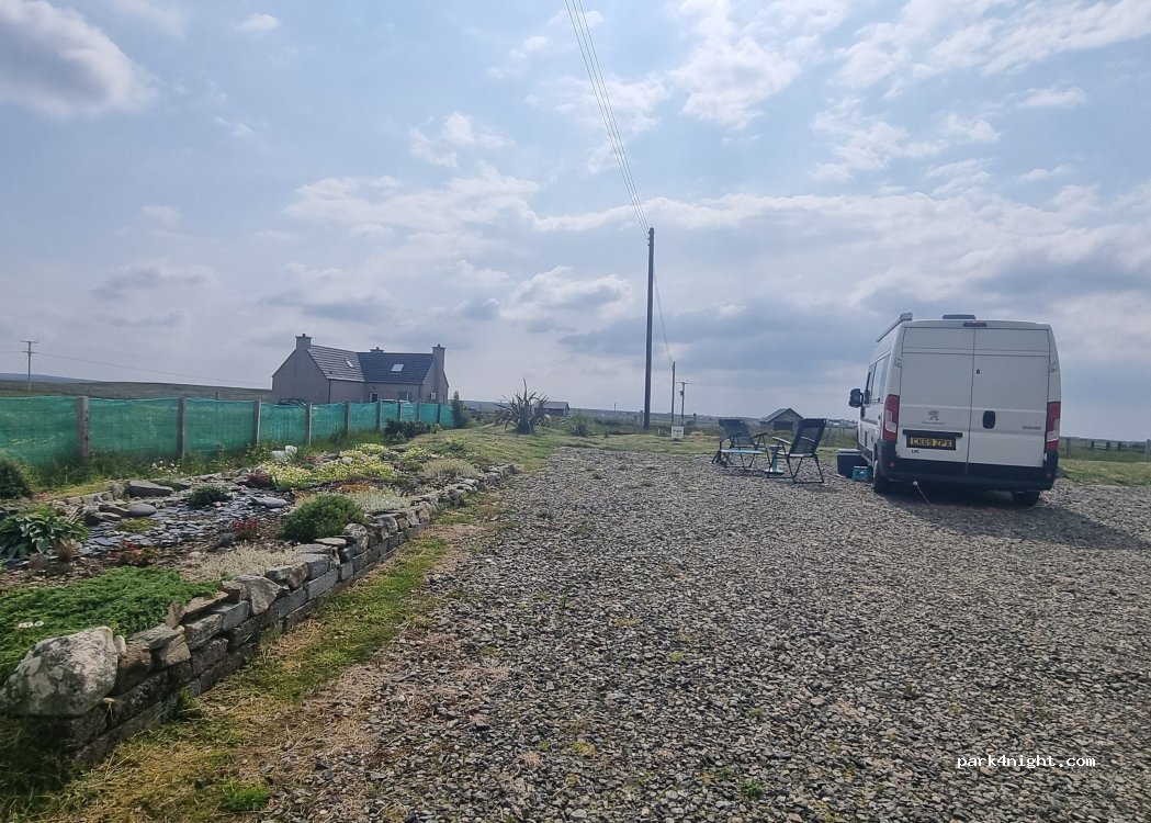Very nice place to stay in North Lewis. Called ahead to check if there’s room for me. Lovely owners with lots of good tips for the area. I was alone with food views and nice dog walks. Drinking water and bins are provided. Good place to stay if you want to park respectfully around the area.