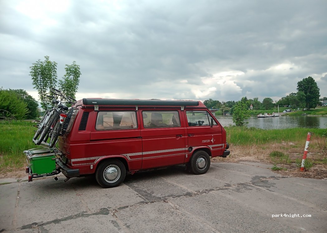 Bel endroit pour une nuit directement sur l'Elbe. Uniquement pour les petits camping-cars. Allée très étroite.