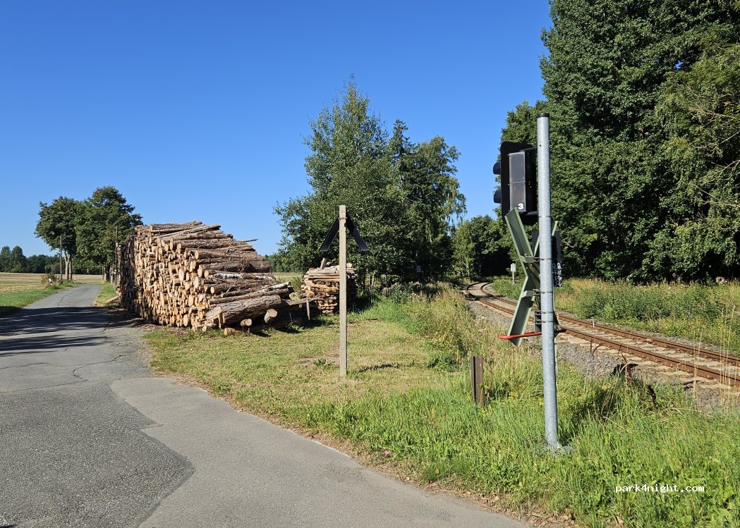 Parking pour pêcheurs et randonneurs dans un endroit calme. Ce parking est le point de départ d'une randonnée jusqu'à la source Säuerling. Il y a une ligne de chemin de fer qui passe mais ce n'est pas gênant car les trains sont très silencieux et circulent rarement.