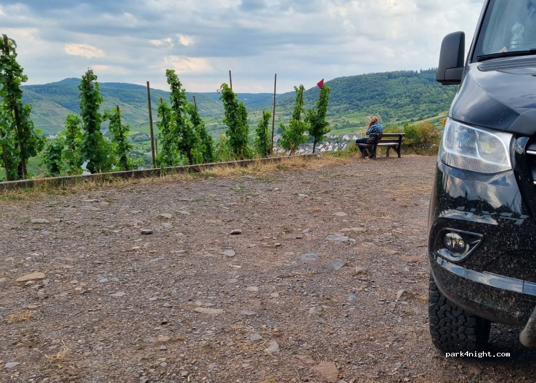 Parking lot in the middle of the forest with a 100 meter walk to the Calmont viewpoint & the wine tavern. Access over a longer gravel road, not suitable for motorhomes! Great for one night! :)