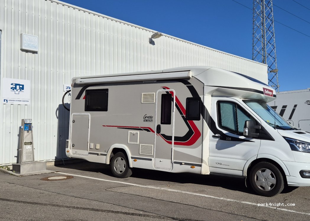 Free motorhome parking space at Hymer Stuttgart. 2-way power connection available. Suitable for mobiles up to 7.50m. Walking distance to the shopping center, etc. Close to the A81 motorway. The area is not very inviting but ok as a stop in transit.