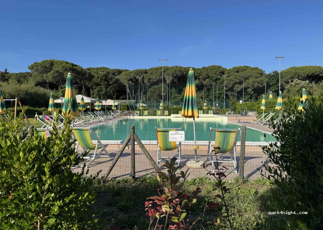 Die freundliche Dame an der Rezeption spricht deutsch. Der vordere Bereich hat ganzjährig geöffnet. Dort große, schöne Parzellen mit 10 Ah Strom. Zum Strand 1km. Mit ACSI 18€. Sanitäranlagen sind ok, immer warmes Wasser zum Duschen. Der Bereich am Strand ist älter, kleine Parzellen mit nur 2 Ah. Mülltrennung vorhanden, es wird aber alles in 1 Container gekippt. In Cecina Einkaufsmöglichkeiten.