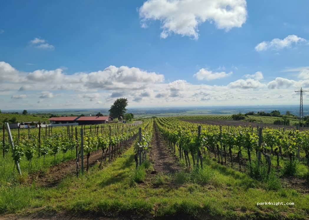 Vue sur Bad Dürkheim, au milieu des vignes. PP du club canin bdb HDW.