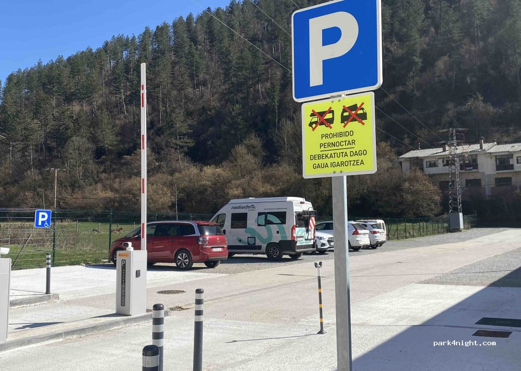 Es un parking sin servicios, pero bastante cómodo para pernoctar y visitar la zona. La gente que escribe que hay límite de altura se equivocaron de parking y fueron al de coches. Pasamos la noche con otras 10 AC, entre ellas algunas bastante grandes así que en estas fechas no hay problema de longitud tampoco. Ideal para conocer la selva de Irati.