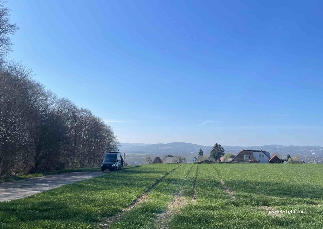 Augewiesener Wanderparkplatz mit Aussicht. Untergrund löchrige Teerdecke, leicht abfallend, kein Durchgangsverkehr. Wandertafel, leider keine Sitzgelegenheit für müde Wanderer, keine Mülleimer. Nachts dunkel, ruhig (Rauschen der A2 latent zu hören). Wanderung durchs Wiehengebirge ist lohnenswert. -Leave no trace, except your footprints--