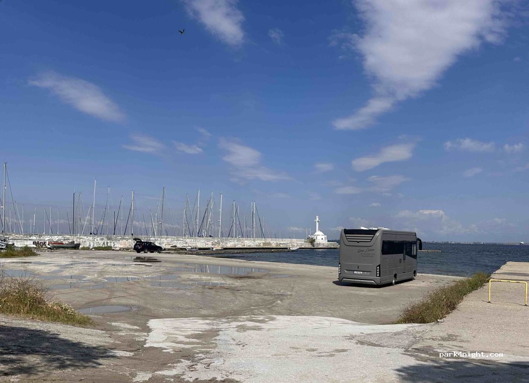 Dieser Platz ist mit Abstand der Beste, um Thessaloniki zu besuchen. Absolute Ruhe und viel Platz. Wirklich gut für große Wohnmobile/ Liner. Wir haben hier 3 Nächte gestanden u. am Tag, bis in die Abendstunden, Thessaloniki unsicher gemacht. Wir hatten ein absolut sicheres Gefühl❗️Direkt am Yachthafen, wo man bei Bedarf auch Wasser bekommt. ACHTUNG: Einfahrt am Restaurant SANAA nehmen‼️