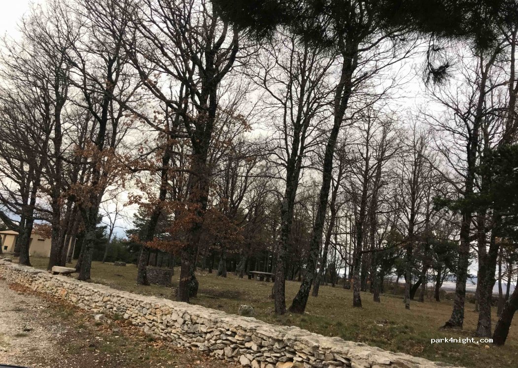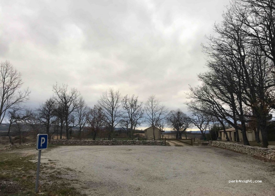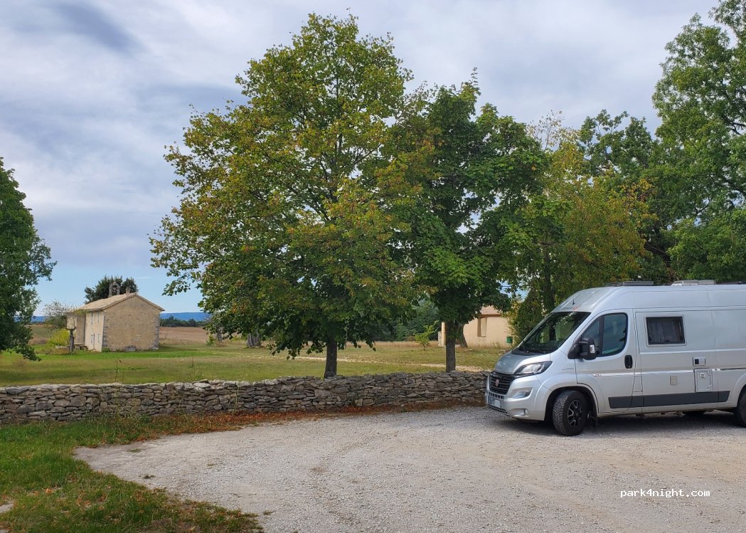 Small cc accessible parking without problem. sheltered picnic area with barbecue (grills - broom - newspaper ...) sink, drinking water, wc. splendid view over lavender fields and Mont Ventoux. Chapel of our lady of the ortiguiere always open. Great spot!
