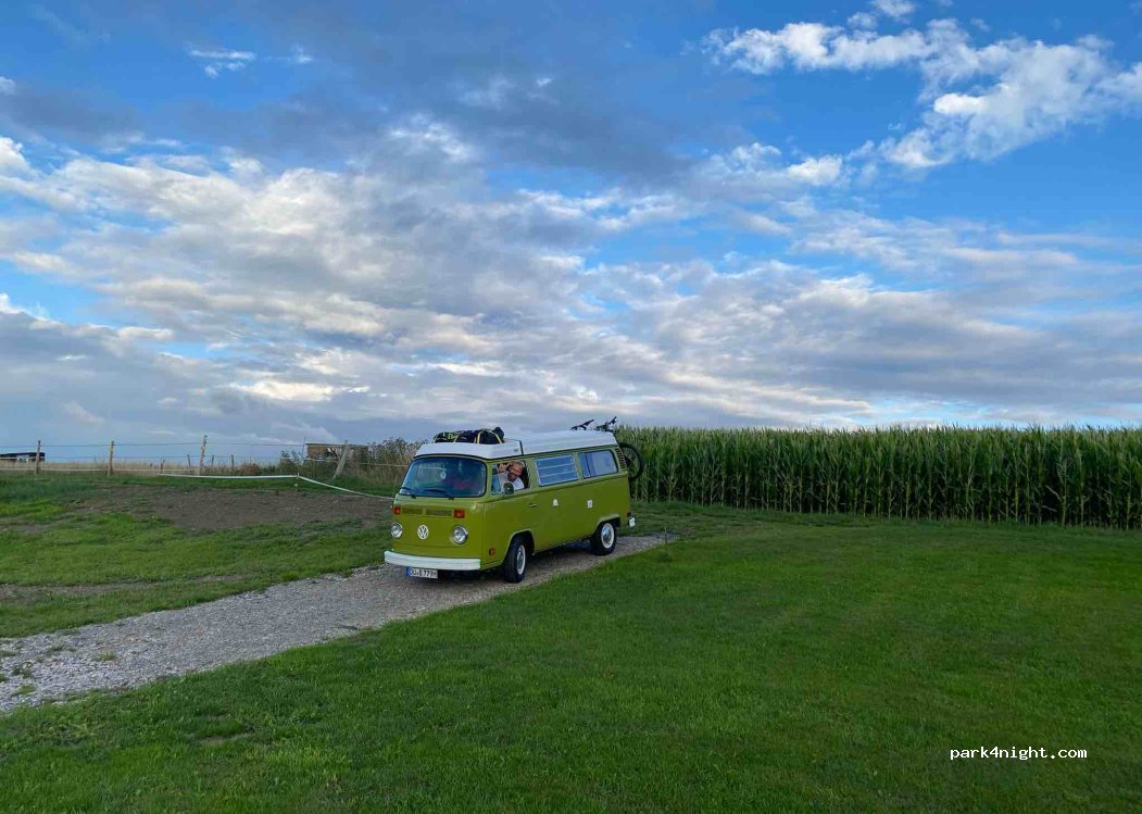 Ein super entspannter Stellplatz auf einer schönen Wiese mit Aussicht in die Natur. Als wir uns festgefahren hatten war sofort der Stellplatzinhaber/in zur Stelle und haben uns rausgezogen und auf ein Bier eingeladen zur Schreckensbekämpfung. Super nette Leute. Duisburger halt. War ein schöner Abend Oli&Andrea