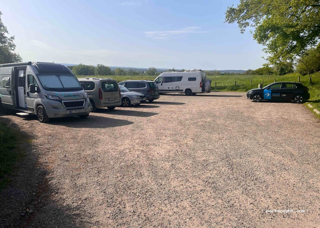 Wenn man auf das Denkmal zufährt, muss man links an der Hecke vorbei, Parkplatz ist hinter dem Denkmal. Im dunklen nicht sofort ersichtlich. Richtig guter Ort für eine Nacht. Perfekt für Hundebesitzer durch den angrenzenden Wald. Tagsüber viel los. Platz ist Leicht schräg.