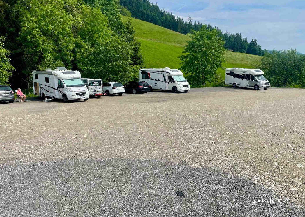Perfekter Parking, ruhig in der Nacht und tagsüber auch. Bächli fliesst hinter Parking durch. Nur Kurtaxe zu bezahlen 2 Fr/Person. Wir sind gleich 2 Nächte geblieben, da es uns so gefallen hat. Viel Platz auch für grosse Wohnmobile (7 m passt gut).