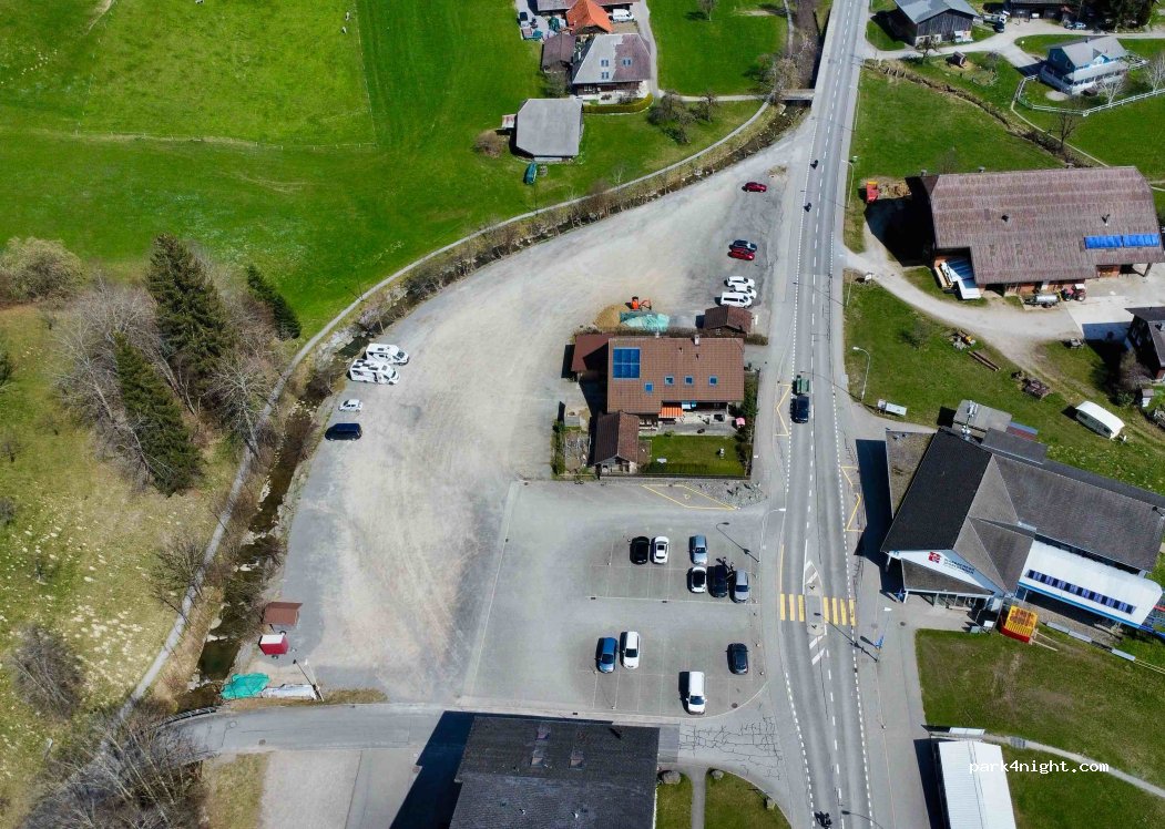 Ruhiger sauberer Parkplatz. Bitte beachten, das die Übernachtung 2Fr. pro Person Kurtaxe kostet. Eine Anzeigetafel befindet sich anfangs Kiesparkplatz. Zur Info: der Bach ist nicht zum abwaschen gedacht, bitte haltet diesen Parkplatz auch in Zukunft sauber.