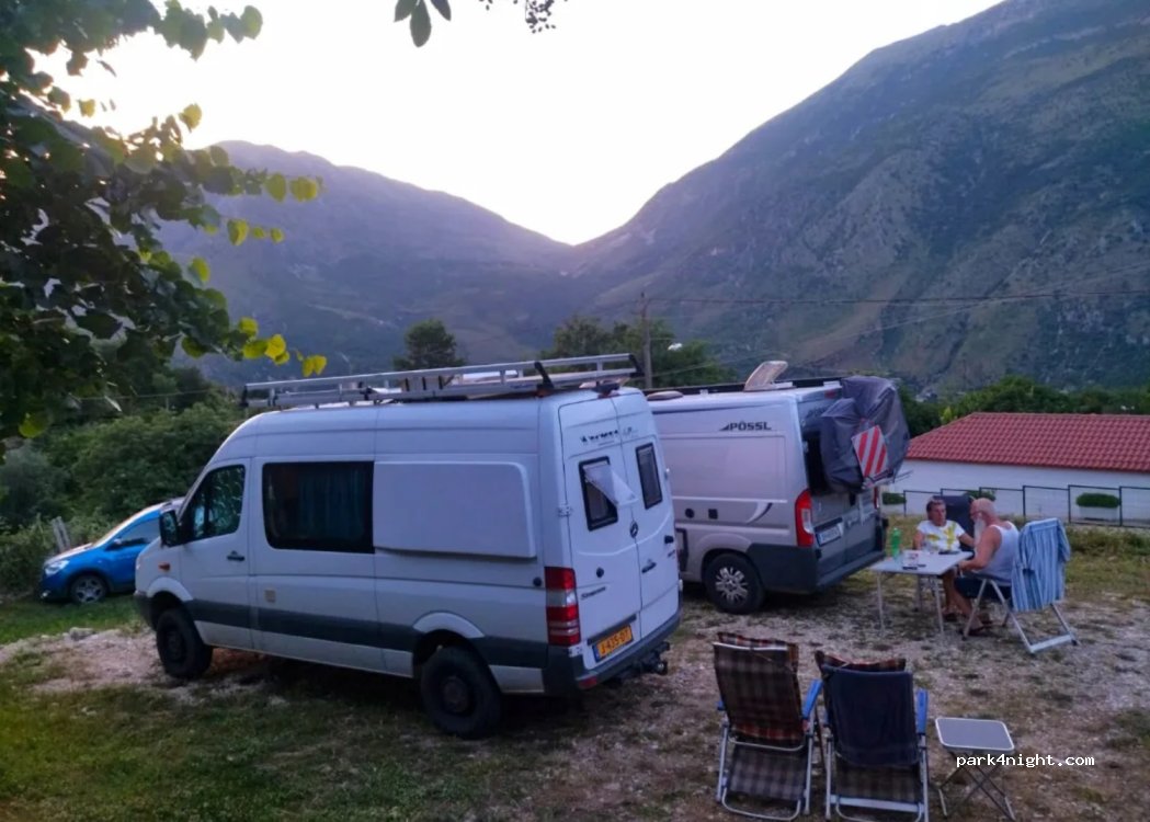 Wunderschönes kleines Anwesen mit super schönem Blick auf die Berge. Mira, die Besitzerin ist mega lieb hilfsbereit. Wenn man mag,kocht sie Abendessen für einen. Uns hat's sehr gut geschmeckt. Es gibt Wifi, frisches Wasser, eine Toilette eine Dusche mit warmem Wasser im gleichen Raum=immer sehr sauber.Einer der wenigen Campingplätze in Albanien,den wir ohne Einschränkung schön und gemütlich fanden!