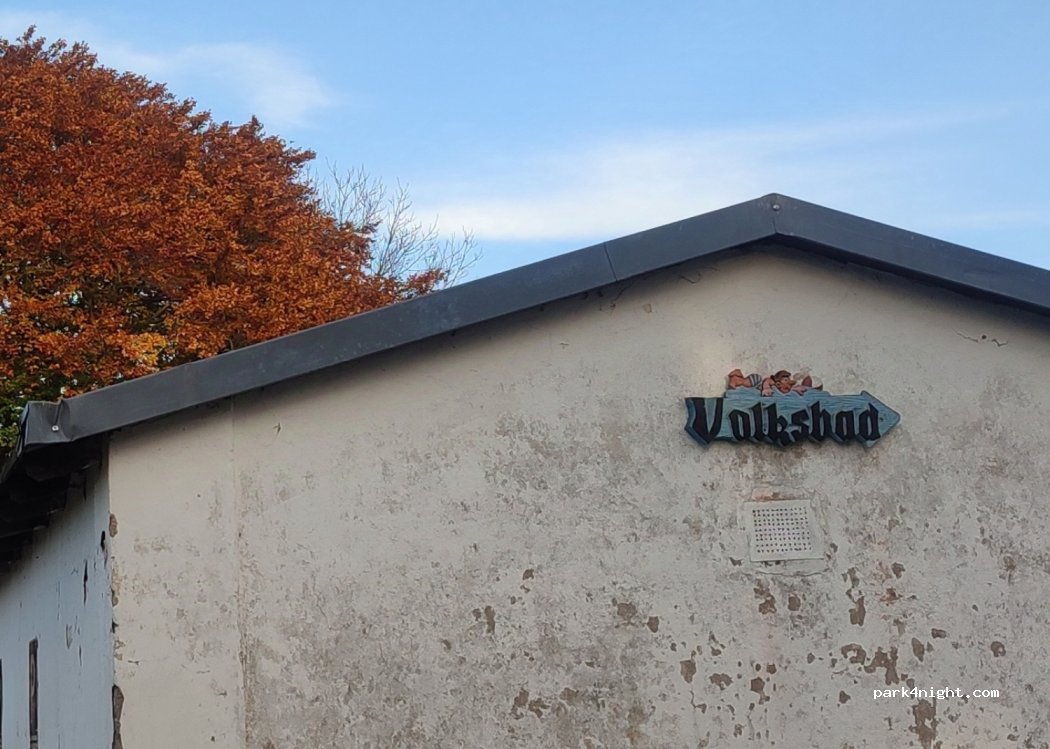 Ein Parkplatz an einem Freibad gelegen nicht für große Wohnmobile geeignet