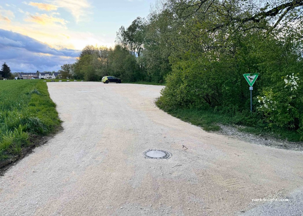 Ruhiger, toller Spot mit super leckerer Pizzeria nebenan. Tagsüber ist der Parkplatz sehr voll, da viele Spaziergänger und Tennisspieler dort parken. Abreise erst am Abend empfohlen. Haltet den Platz sauber.