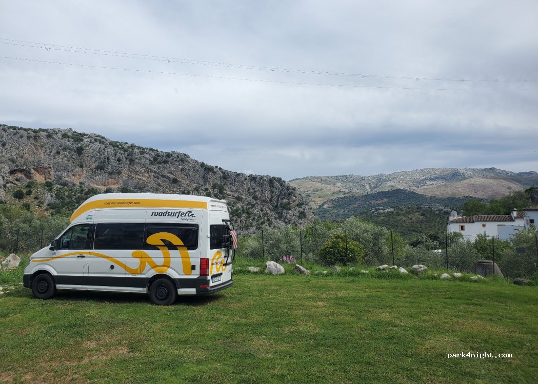 Absolut ruhig gelegen mit gigantischer Aussicht / leider ist „Camping“ nicht gestattet weil die Gemeinde wohl selber einen Campingplatz machen möchte und diesen Platz als Konkurrenz betrachtet / es gibt keine Duschen / WC super sauber / Grillplatz und Sitzgelegenheiten / wir sind mit den Rädern nach Ronda und Setenil de las Bodegas / Mountainbiker haben ihren absoluten sportlichen spaß