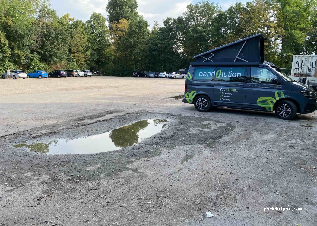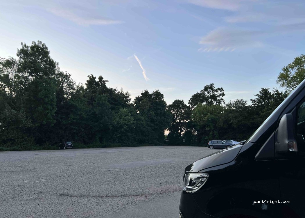 Schöner ruhiger Parkplatz. Viele Leute mit Hunden die aber nicht störend waren. Am einer Ecke stehen Glascontainer, da vielleicht nicht hinstellen. Ein wenig beleuchtet. Für einen Zwischenstop gut.