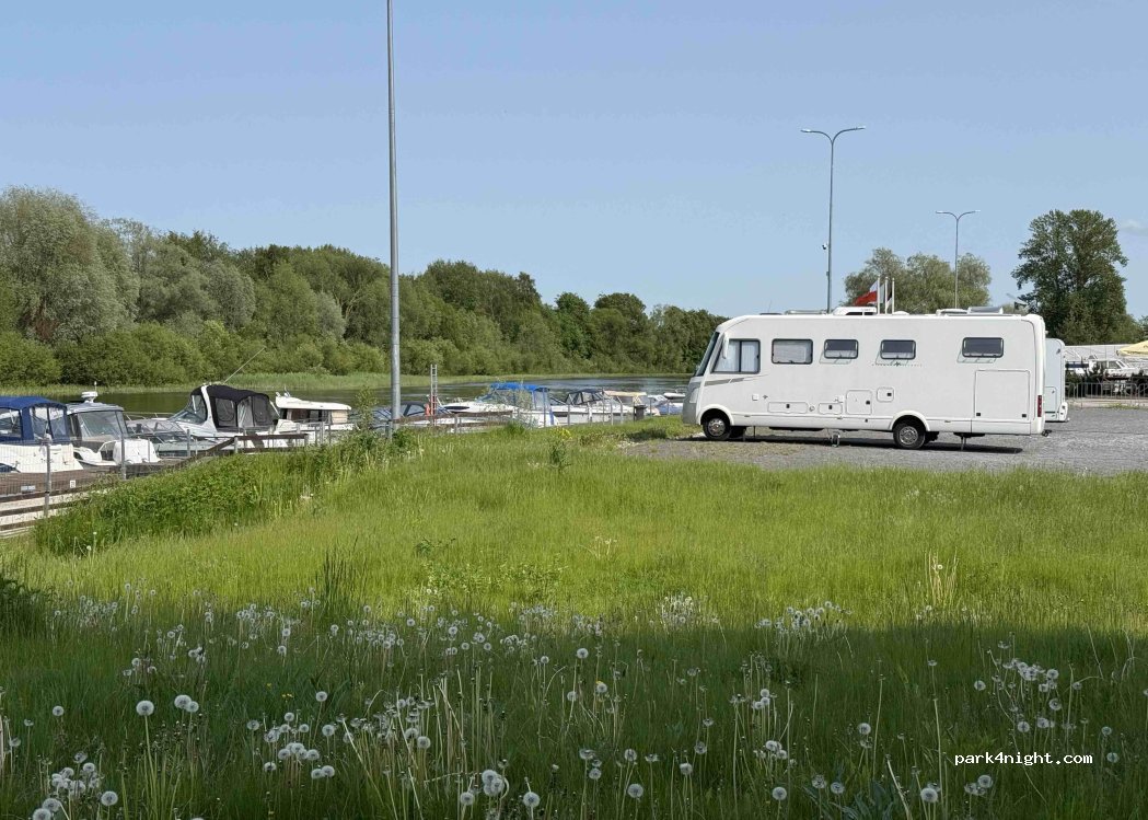 Aire très bien située à 30mn à pieds du centre ville, au bord de la rivière au port de plaisance. Aire stabilisée par du gravier, environnement calme est très agréable. A conseiller