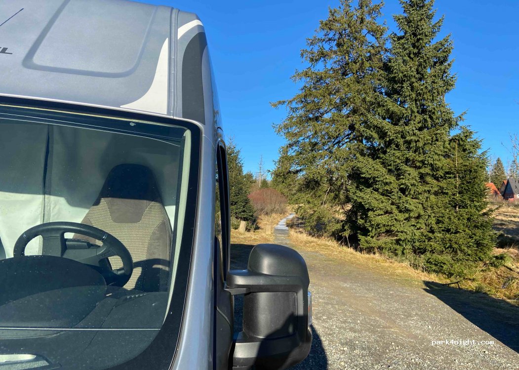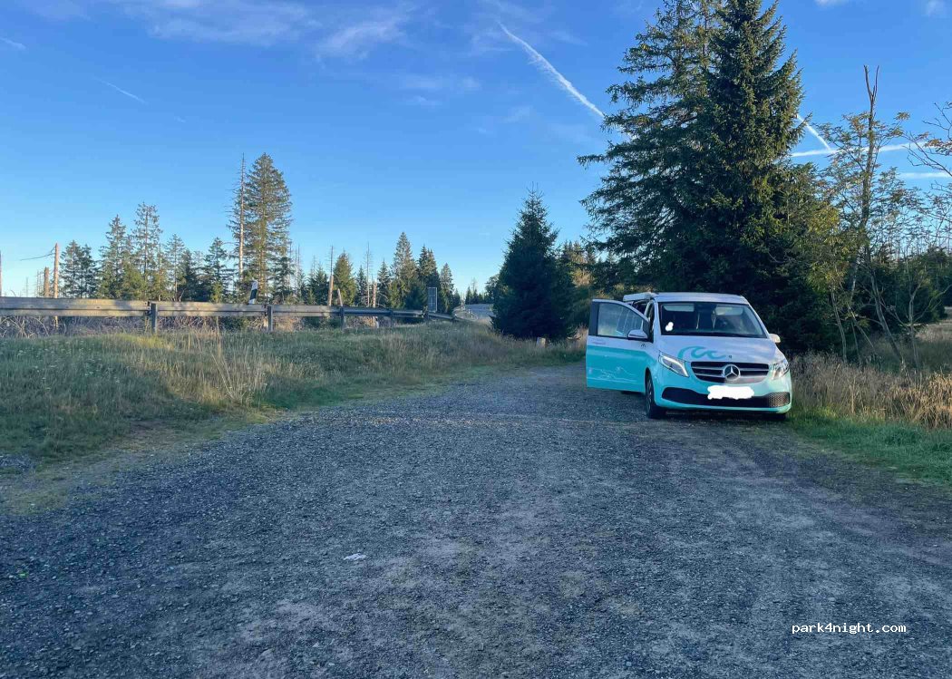 Kleiner kostenloser Parkplatz für Transporter und Kastenwagen, perfekt für Wanderungen, direkt an der Straße.