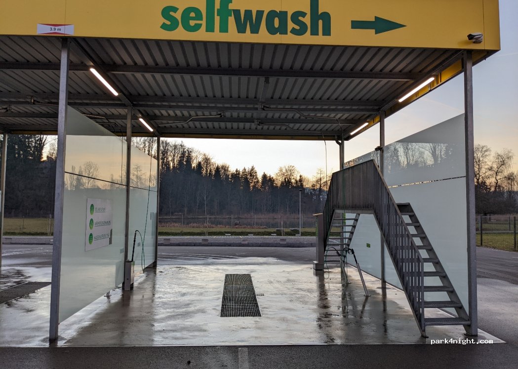 New modern car wash at Landi in Matzingen. Suitable for large or tall mobile homes. There are high stairs / footbridge to also clean the roof. You can also refuel or buy gas.