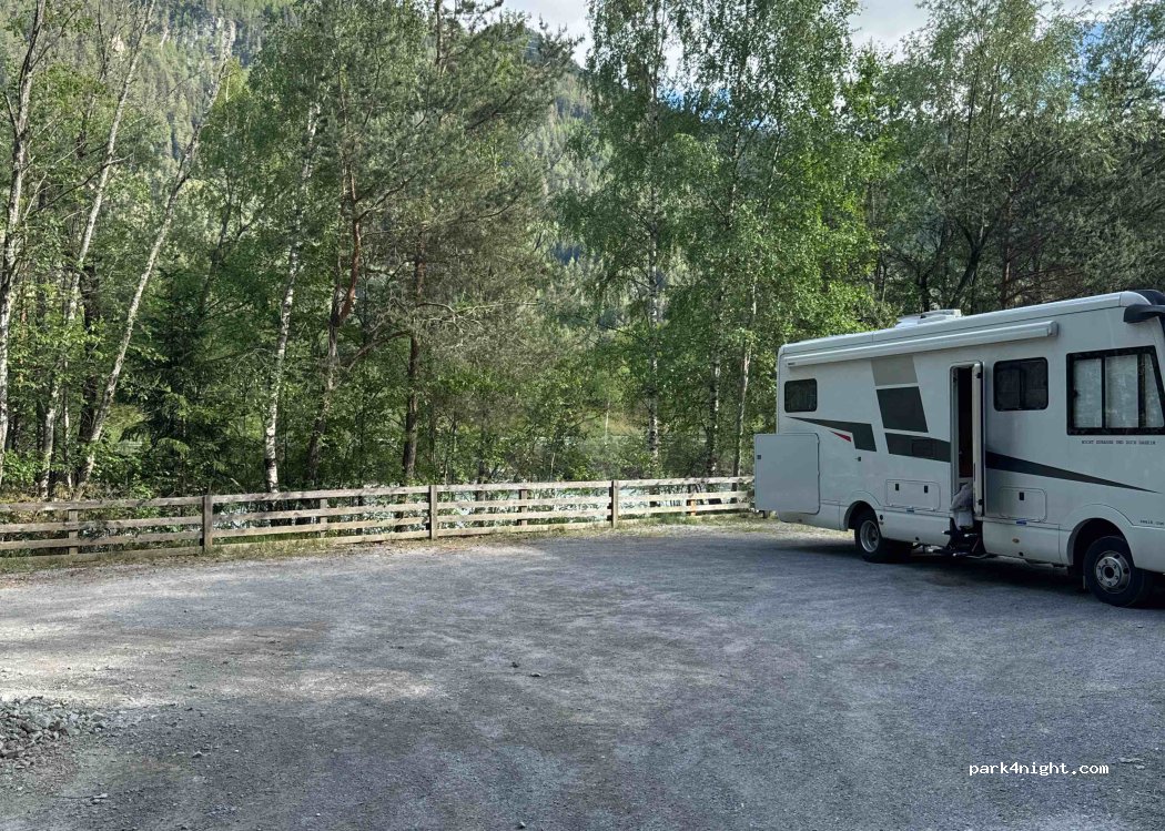 Très bon spot. Nous y avons passé 2 nuits. Un peu de bruit du torrent et la route le matin mais sans souci. Randonnée du côté de Landis, parking des remontées. Apparemment les autrichiens prennent les télécabines à pied ou avec leurs VTT et redescendent ensuite mais...ne montent pas ! Surprenant quand on est Français.