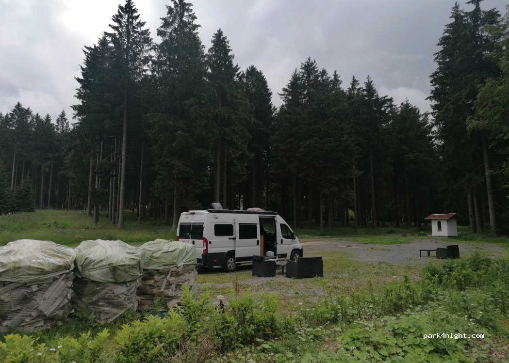 Very quiet parking space also suitable for large mobile homes. In the Waldhotel, which is on the premises, you can eat very well, the staff are very friendly. The bunker museum is definitely recommended.