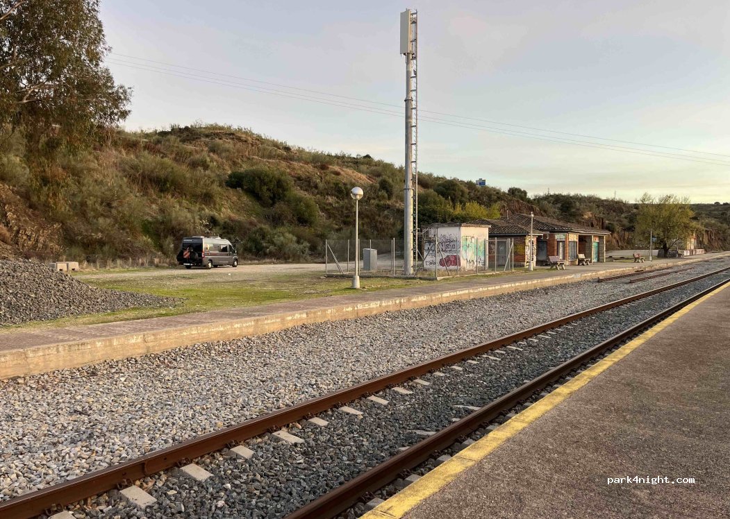 Kleine P bij een lost place van een treinstation. Een steil, maar goed begaanbaar weggetje naar beneden om er te komen. Je staat onder een rustige weg maar bent vanaf daar niet zichtbaar. Mooi zicht op het meer, waaruit nog een toren naar boven steekt. Geen voorzieningen. Let op! Er rijdt nog wel een enkele trein. Heel stil en donker hier.