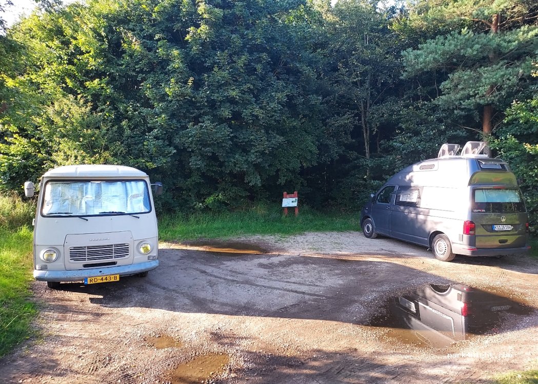 Petit parking pour 2 ou 3 vans. Il n'y a pas d'installations, mais vous pouvez faire de belles randonnées. La forêt est bien plus belle qu'il n'y paraît sur la photo satellite ! C'est près d'un lac, vous pouvez probablement nager. La réception téléphonique est correcte.