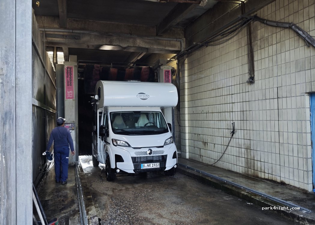 Le lave-auto Grothe est super bien pour tous les types de mobil-homes et camions.Un lavage pour un mobil-home. Il y a aussi des saucisses et du café gratuits.