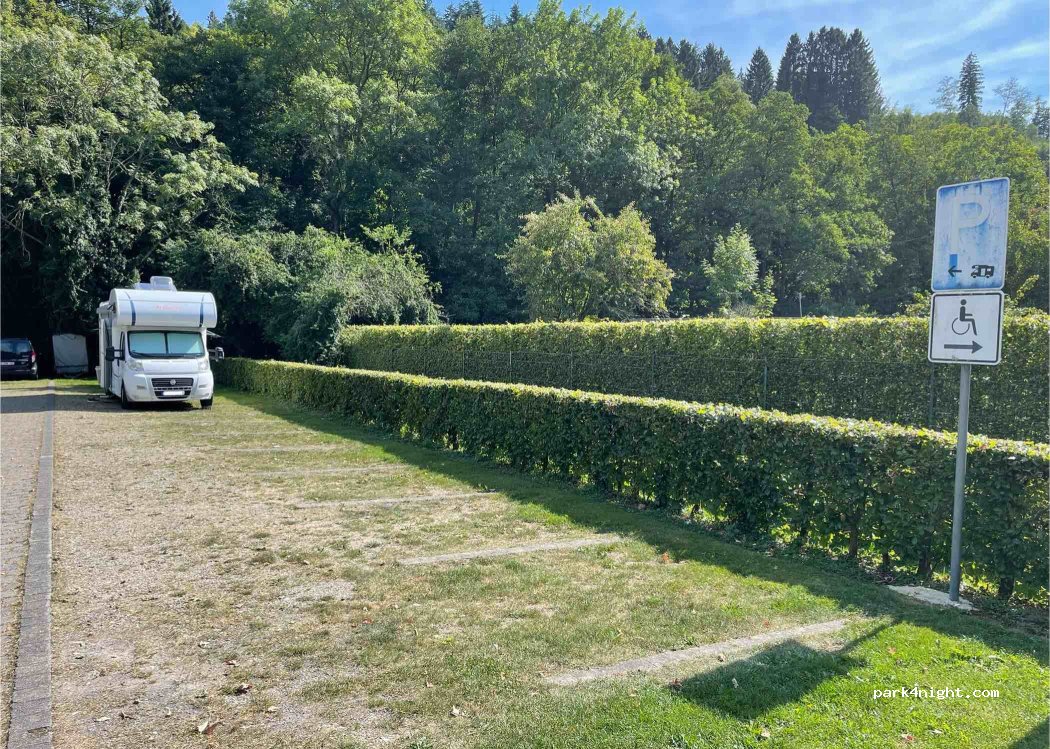 Quiet carpark in a small town. It felt safe with lights and houses nearby, but not too close. We stayed two nights. Checkout historical hike/walk number 86 to see some WW2 bunkers and forest scenery. Also we recommend the nearby historical hike “Parkplatz Ochsenkopf” hike, for many more bunkers, and memorials (drive to Parkplatz Ochsenkopf and check their signboard).