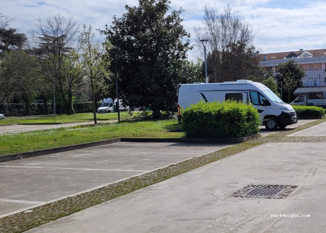 Confermo, parcheggio con posti ampi adeguati a camper di 7 mt mettendo il retro del camper sull'aiuola. Nessun cartello che vieti sosta ai camper. Tranquillo è silenzioso.