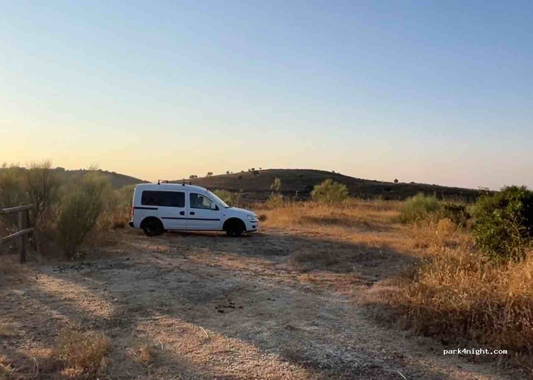 Viewpoint "el alto". Quiet place, next to a road with little traffic and with views of the Sierra de Aracena. The street is not very wide and the parking spaces are short, therefore you have to occupy a minimum of 2 so as not to stand out. It is also not a problem since it is a little frequented place and there are about 20 more parking spaces.