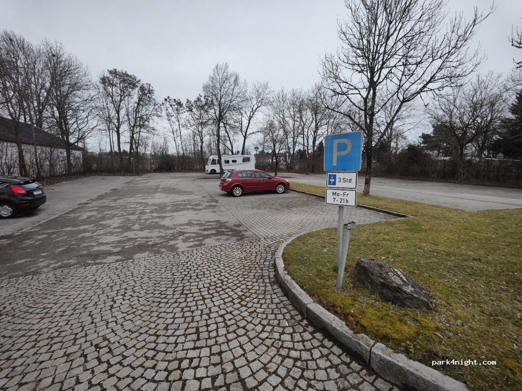 Aparcamiento en el polideportivo. Hay un restaurante cerca y se puede acceder a un Rewe a través del jardín ambiental.