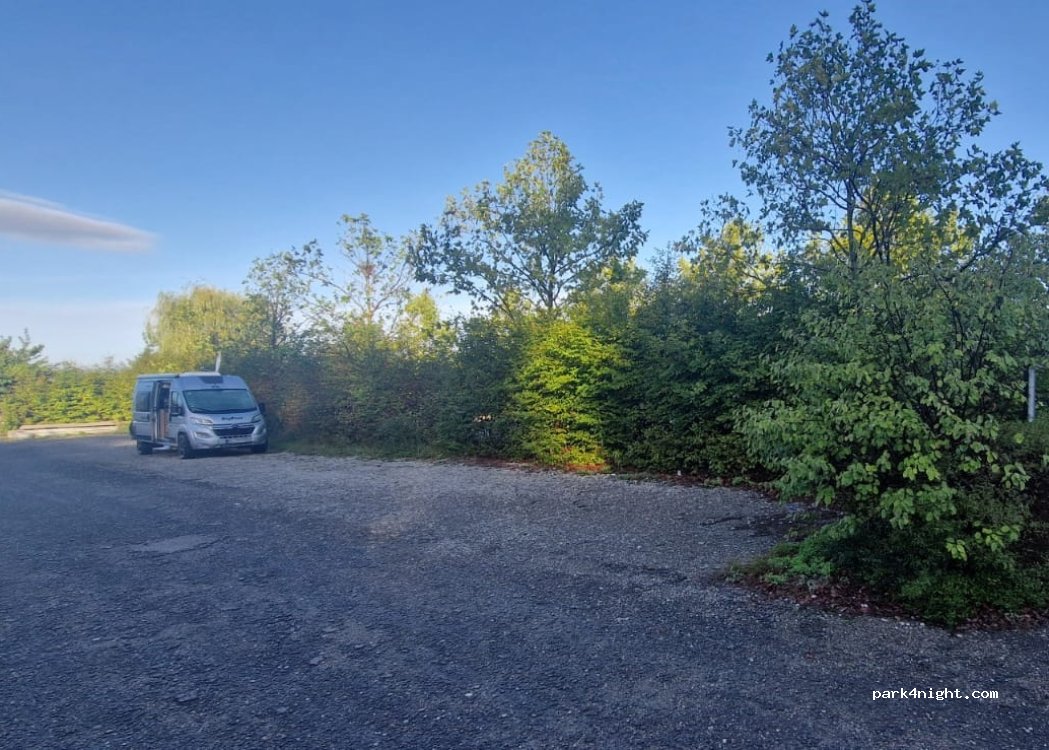 Parking réservé aux véhicules aménagés très sympa mais il est dommage qu’il n’y ait pas au moins des poubelles à disposition. Le bourdonnement régulier du trafic aérien est aussi un peu dommage.