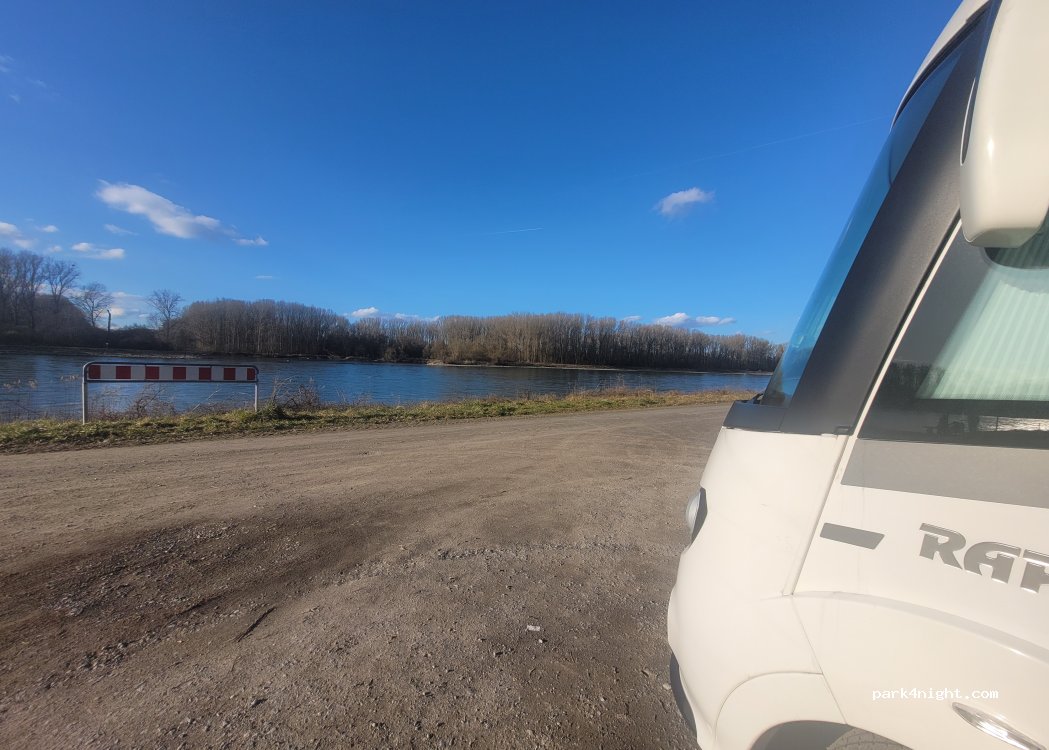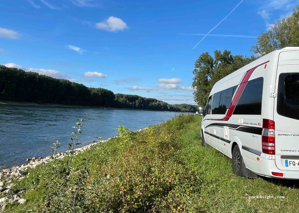 Très bel endroit au bord du Rhin, accessible à tous les gabarits, stabilisé et partiellement ombragé. Aucun service, mais réception satellite et 4/5G optimale. Calme, ce stationnement très agréable est au départ de belle promenades le long du fleuve.
