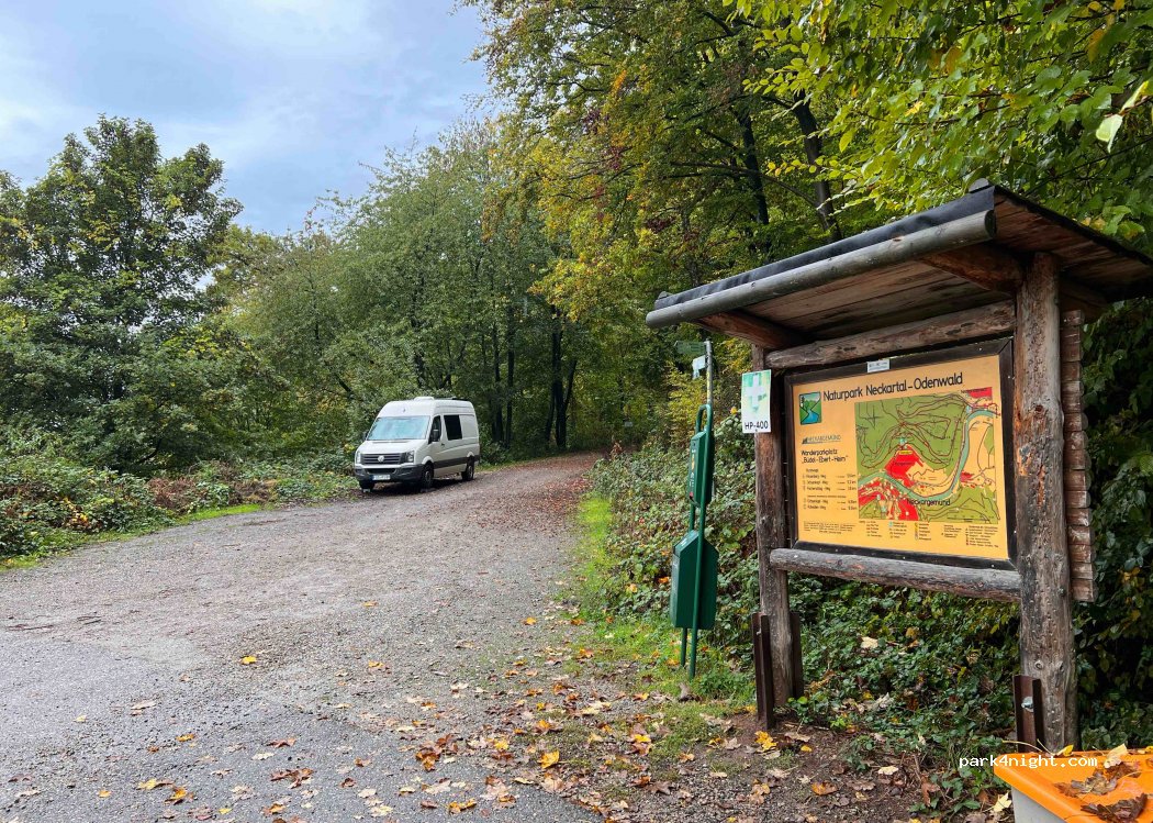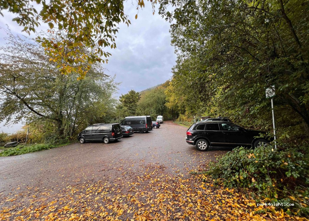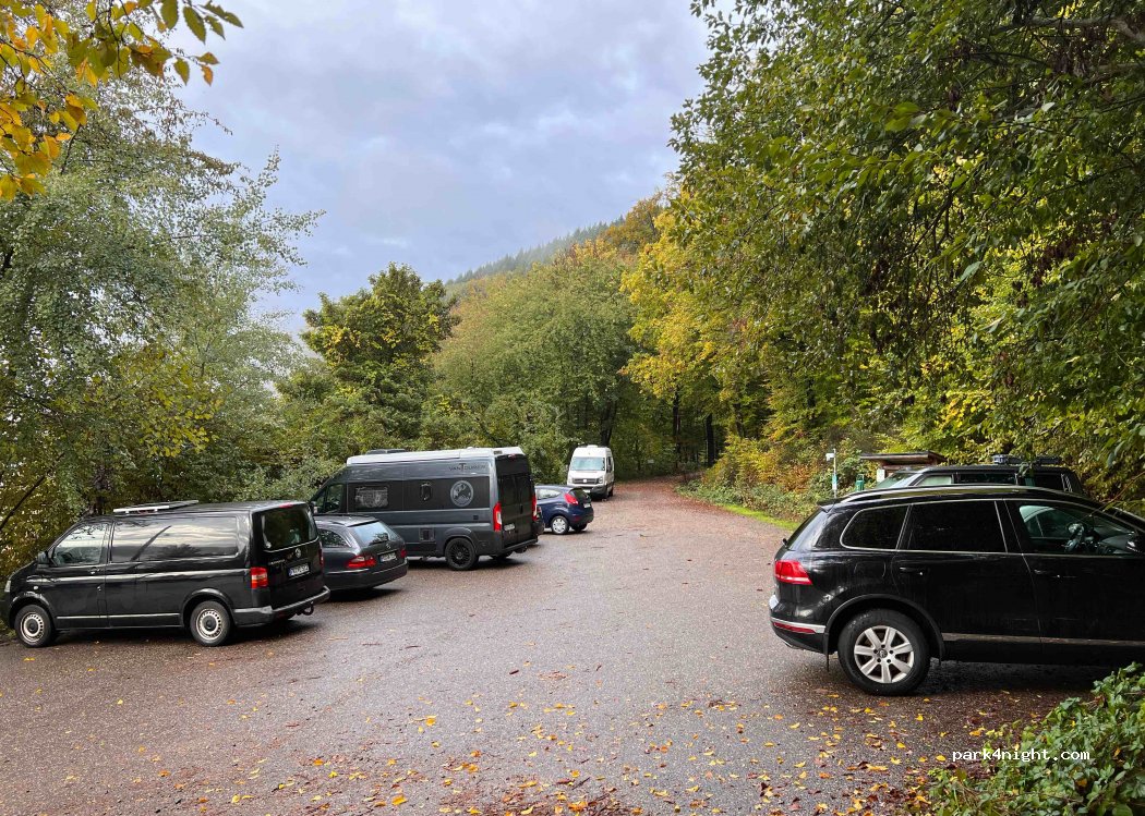 Ein kleiner Waldparkplatz der bis auf ein paar Spaziergänger sehr ruhig ist. Kein Camingverbotsschild.