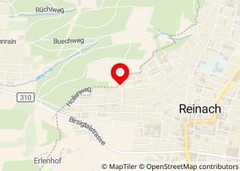Parcheggio abbastanza pianeggiante per una passeggiata. Bella vista su Reinach. Fontana di acqua potabile al punto di vista.