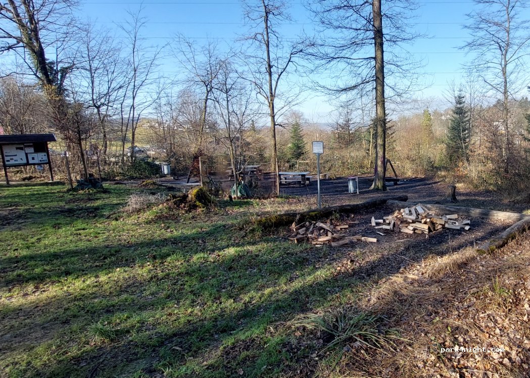 Leuke picknickplaats met vuurkorven. De parkeerplaats is scheef en ongeschikt voor overnachtingen.