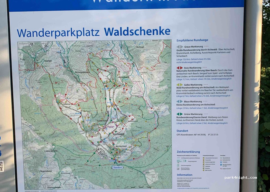 Ruhig, vor allem nachts. Nicht sehr idyllisch wg. der dort abgestellten Anhänger, Wohnwagen und Wohnmobile, dafür kann man wohl unbeanstandet übernachten. Parkplätze für die Kneipe sind separat gekennzeichnet. Für eine Übernachtung auf der Strecke aber sehr gut geeignet, da etwas außerhalb gelegen. Nächster Supermarkt im Nachbarort (Aichwald), Bäckerei vor Ort im Industriegebiet.