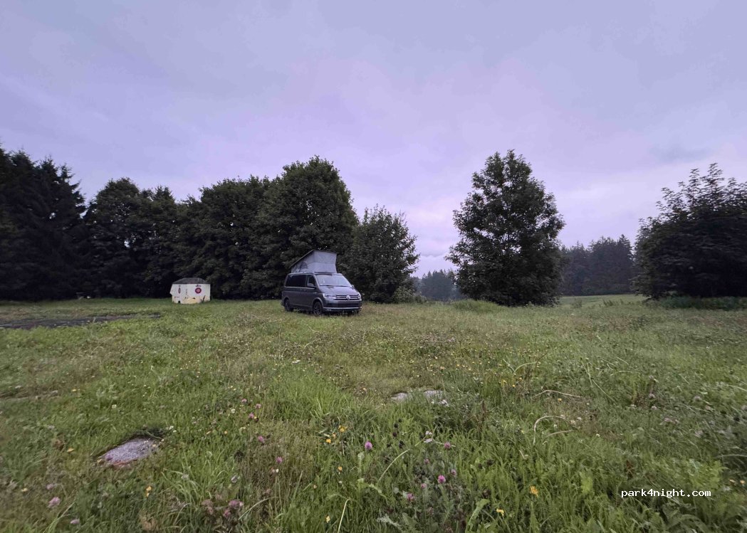 Die Gemeinde lädt hier ihren Holzschutt ab. Auf der sehr nahen Straße ist auch am späteren Abend einiges los. Platz gibt es reichlich, auch für ein Wohnmobil. An irgendwelche Vorschriften wird einen hier sicherlich niemand erinnern.