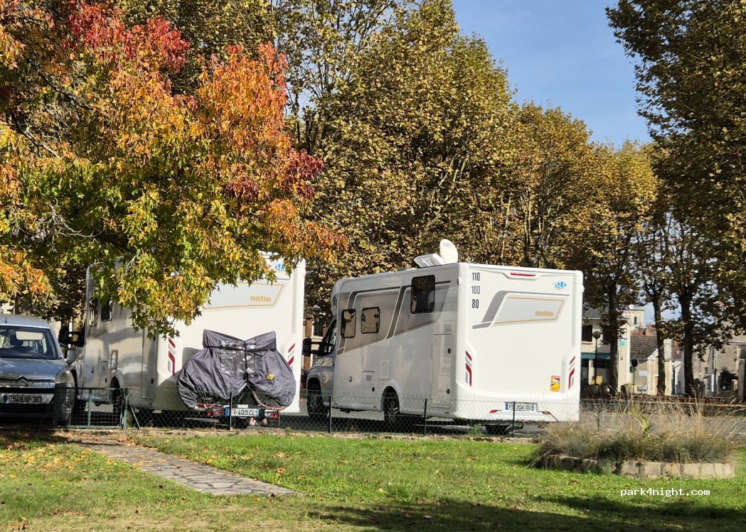 Place du champ de foire. Stationnement interdit le vendredi (marché). Toilettes publiques sur place. Face à la gendarmerie.