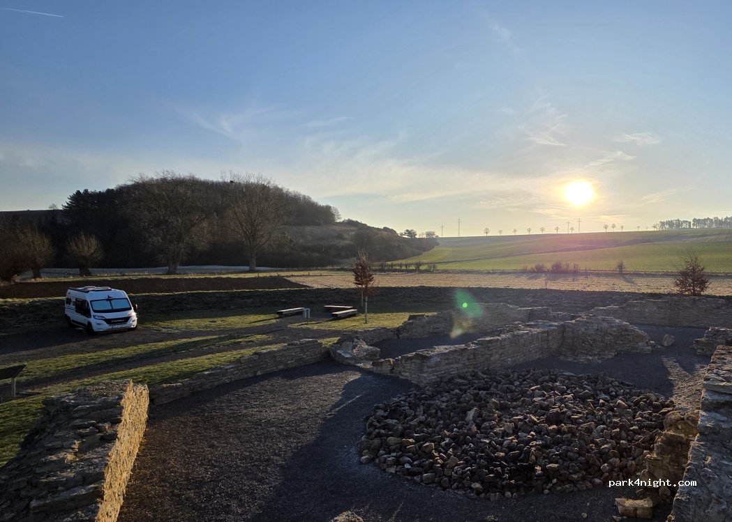 Its a nice and seemingly quiet place to stay for a night next to the ruins of Holsterburg, but around 22 o'clock alot of local youths came and drank at the parkingspot. This was on a monday night and reading the google reviews this seems to be a common meetingplace for them to drink. Luckely they were only there for about two hours before leaving. They also left all their bottles and trash behind
