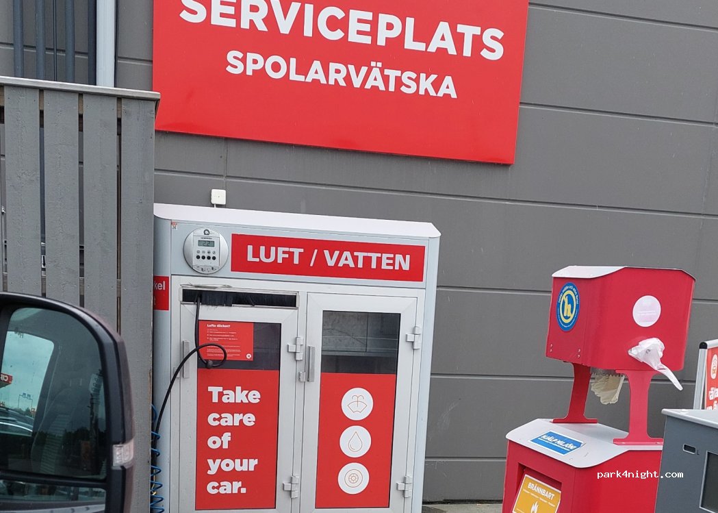 Large service area with 2 shower cabins to freshen up and free toilets. Water tanks can be filled outside. Parking is free from 8:30 am to 3:00 pm. After that it's 100k per hour. An ideal address for a quick shower while passing by