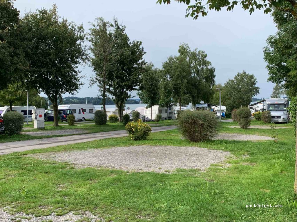 Gepflegte Anlage in ruhiger und schöner Lage. Die Größe der Stellfläche lässt sich aus der Website entnehmen! Stellplätze der Kat. A großzügig bemessen mit Aussicht auf Berge und teilweise auf den See. Sanitäranlagen sehr sauber. Restaurant sehr gut.