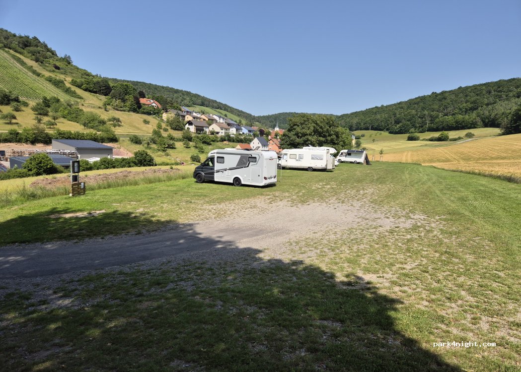 Ein toller und ruhiger Stellplatz mit schöner Aussicht in die Weinberge. Für Autarke Fahrzeuge ideal. Radweg nach Bad Kissingen und Umgebung gehen am Platz vorbei. Danke an die Gemeinde.