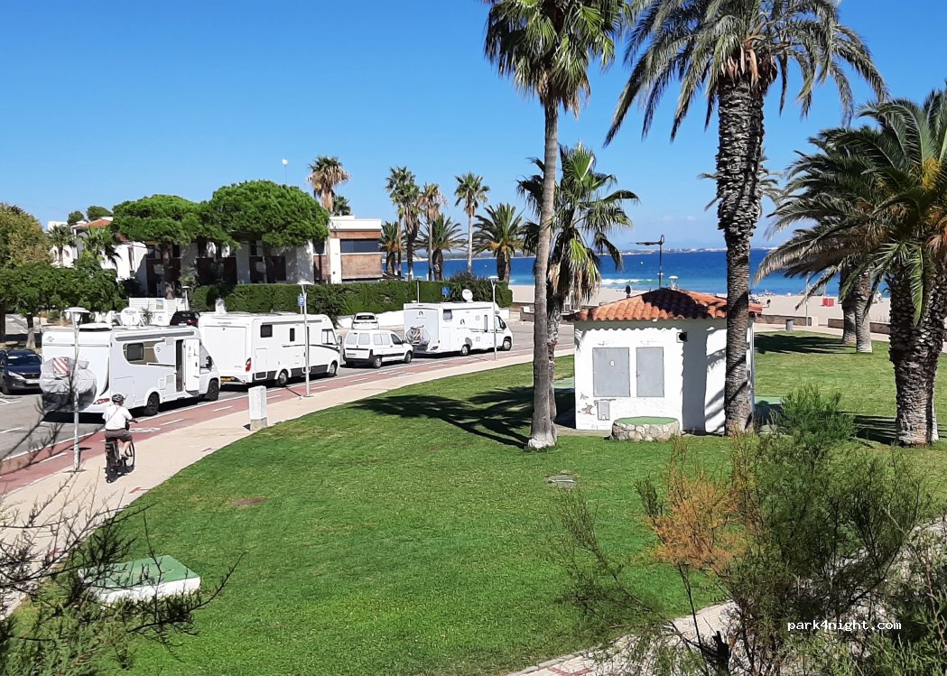 Magnifique place plate devant les immeubles face à la mer. Les douches ne sont pas en fonction. Calme pour passer la nuit.